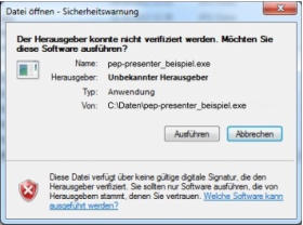 Nach dem Ausführen öffnet sich ein Fenster,der “pep PRESENTER”.Bitte haben Sie etwas Geduld bis das nächsteFenster Automatisch geöffnet wird.